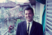 I started this blog yesterday evening, but when I tried to add the pix it killed the site, so I am trying again today. Yesterday was a typical Sunday.  We went to church and came home and ate some minestrone soup Myrna started on Saturday evening.  It was wonderful with the artisan bread we bought in Piacenza.  Then I took a nap while Myrna came down and watched a session of conference in our air conditioned office.  I came down and our new mission president, President Allen, called me and asked if we want to go with them to a baptism in Muggiò, which is about an hour north of here. I remembered I heard that one of my old mission companions is now the high priest group leader of the ward in Muggiò, so I found a picture of him I took in 1966 on the balcony of our apartment in Bergamo, and we went.
